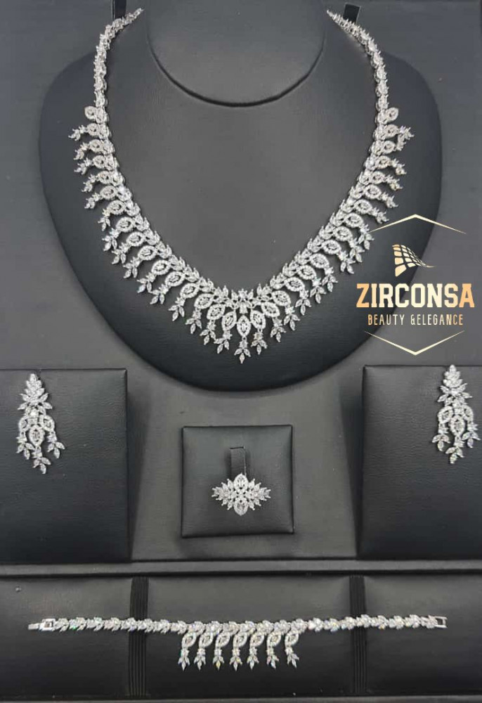 طقم اكسسوارات نسائي مرصع بحجر الزركون عالي الجودة مشابه لمظهر الألماس .
