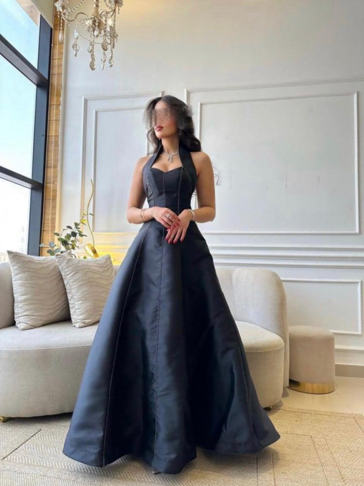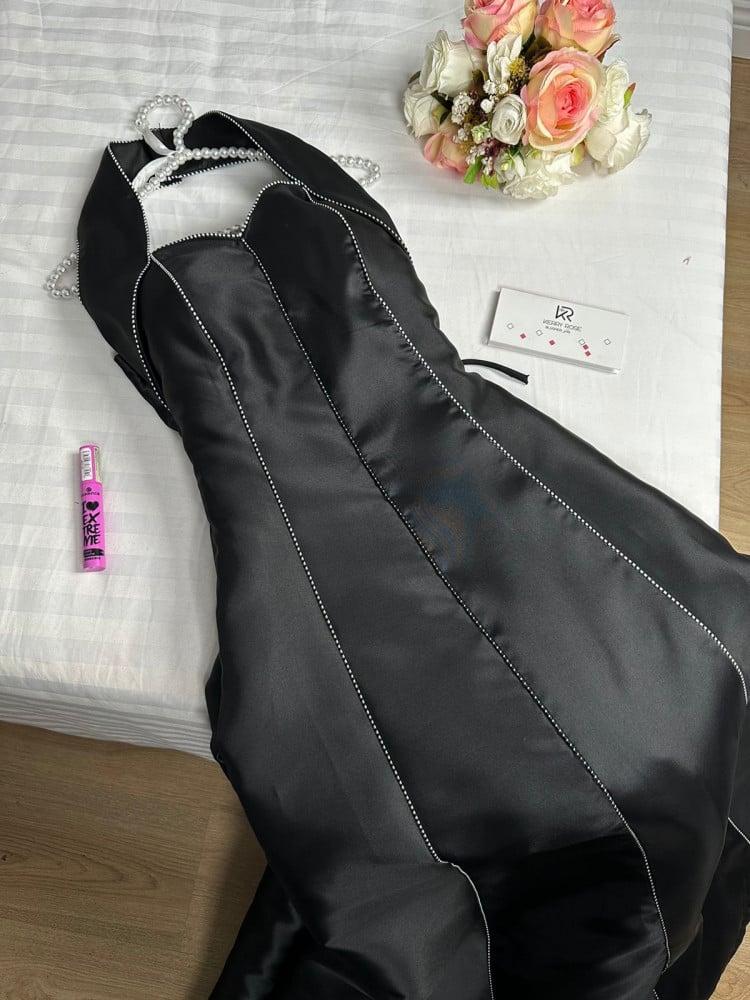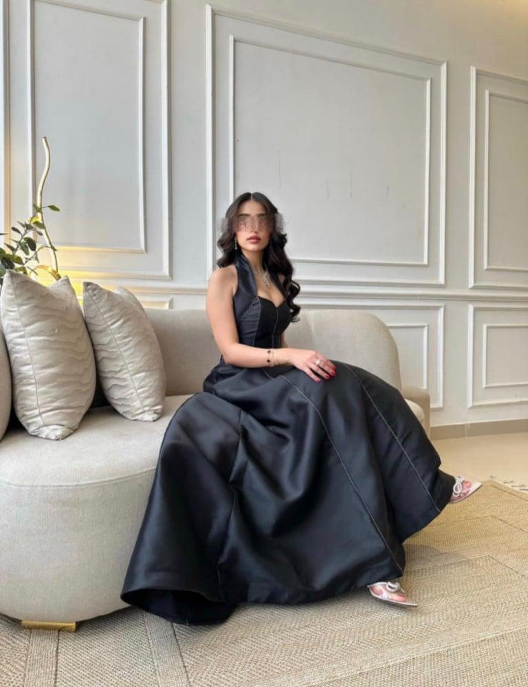 فستان اسود ميكادو مطفي مميز بحبال من الظهر