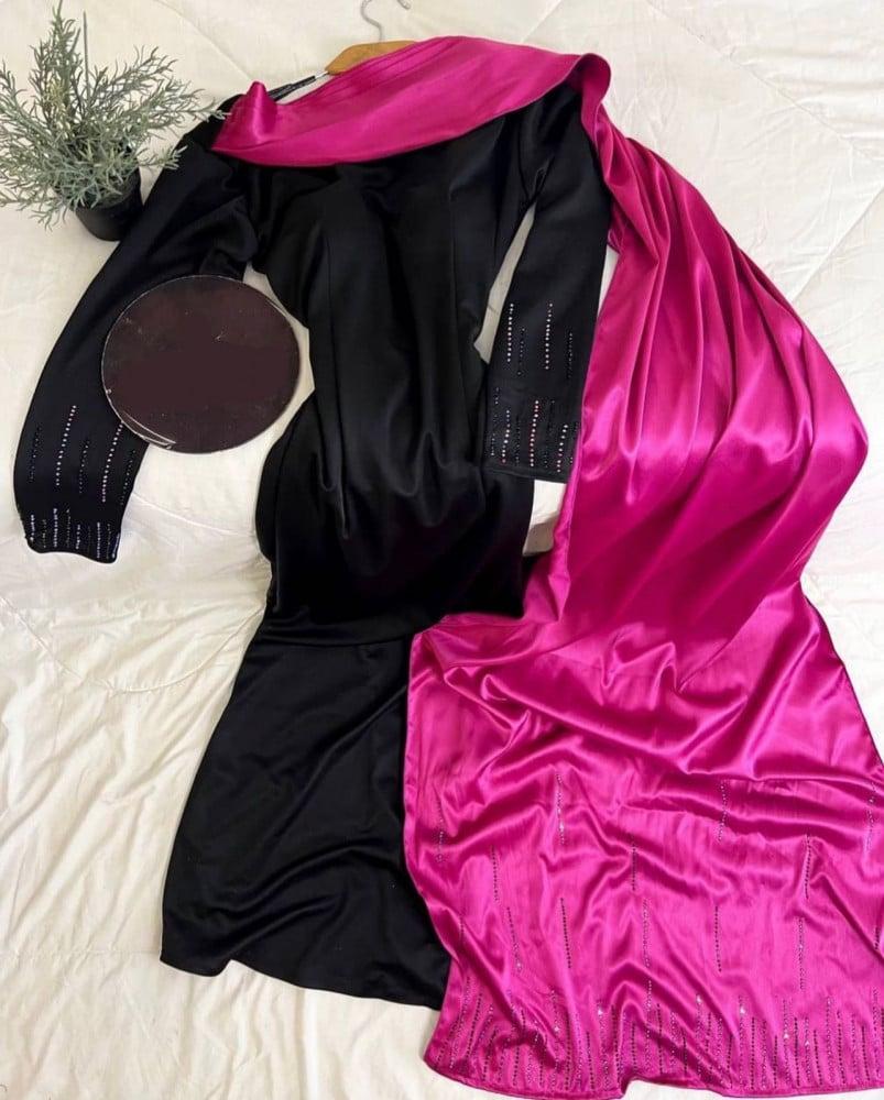 فستان طويل ساتر كريب سترتش مع شال تفته طويل